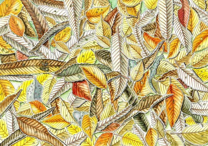 栗の葉が混じる落ち葉を描いてみました。裏表の表現が結構大変でした。